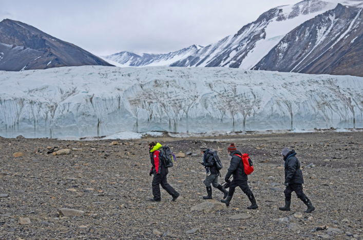 Enjoy an exclusive helicopter flight^ and landing at the McMurdo Dry Valleys, a Mars-like landscape and the driest place on earth (weather permitting).